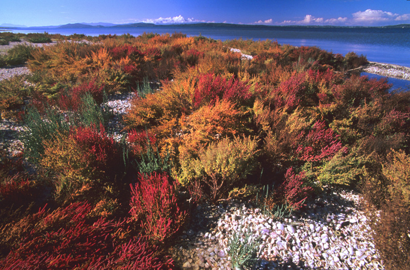 κανάλια, λιμνούλες και νησίδες. Στις ακτές των λιμνοθαλασσών φύονται οι αρμυρήθρες και λειμώνες με